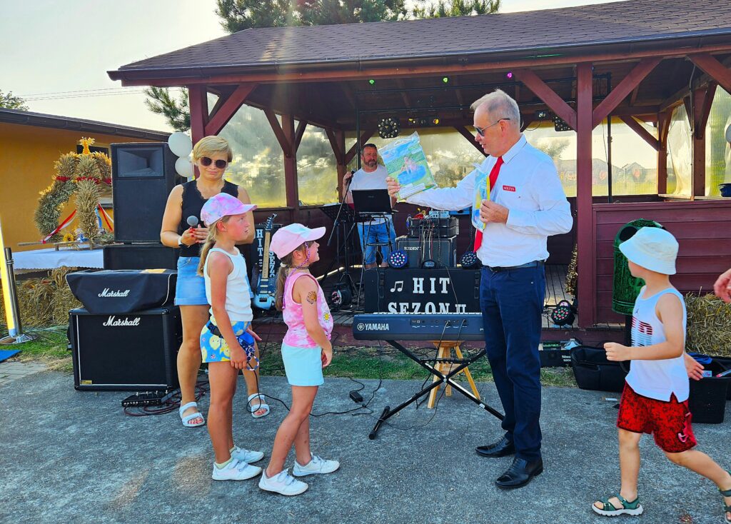 W ramach obchodów dożynek organizatorzy przygotowali dla najmłodszych bogaty program rozrywkowy: konkursy zręcznościowe, przejażdżki konne, dmuchaniec, kamerę 360 stopni, a także orzeźwiającą kurtynę wodną od strażaków OSP Szczodre – za co serdecznie dziękujemy!