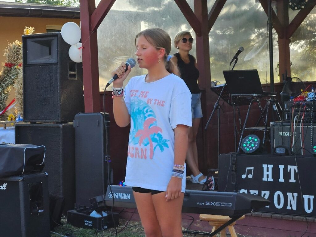 Na scenie dzieci mogły zaprezentować swoje talenty w programie „Mikrofon dla każdego, czyli szansa na sukces”. Szczególne brawa należą się naszym młodym artystom – braciom Miłoszowi i Mateuszowi z Pruszowic, którzy pokazali prawdziwy muzyczny kunszt .